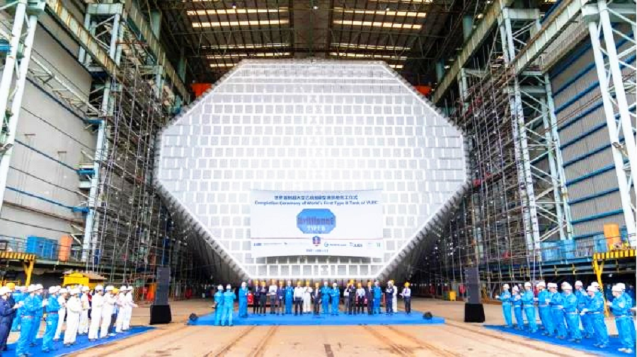 5月12日,公司旗下太平洋氣體船(香港)控股有限公司(下稱“太平洋氣體船”)由江南造船(集團)有限責任公司(下稱“江南造船”)負責建造的世界首制99000立方米超大型液化乙烷運輸船(VLEC)建造工作迎來關(guān)鍵節(jié)點——首個B型液貨艙完工。B型液貨艙作為VLEC最為關(guān)鍵的部分,首個液貨艙實現(xiàn)結(jié)構(gòu)和絕緣的完工,為后續(xù)VLEC系列船實現(xiàn)節(jié)拍化建造、確保首制船按期交付打下了堅實的基礎(chǔ)。