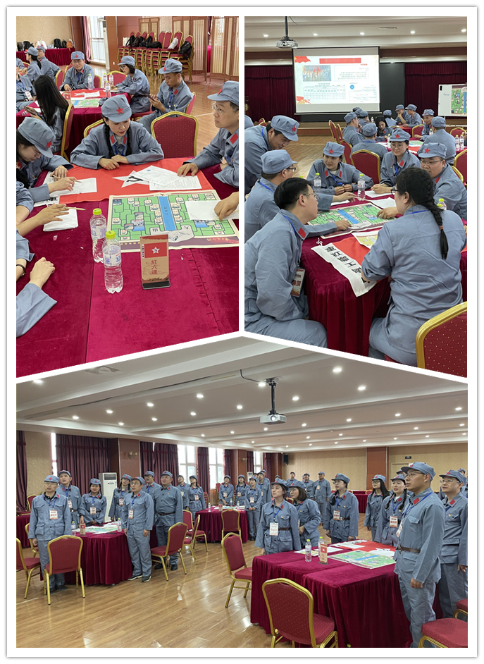 下午,重走長征路情景沙盤課程中,授課老師帶領大家重溫了長征那段波瀾壯闊的歷史,全體人員精神飽滿,齊聲朗誦《七律·長征》。沙盤推演中,全體人員組成了6個連隊,以“巧渡金沙江”“飛奪瀘定橋”“爬雪山”“過草地”等長征中的重大事件為背景,通過沙盤畫面和任務設定等方式,深刻了解了在各種復雜艱難的形勢下,紅軍戰(zhàn)士用智慧和信念贏得長征勝利的光輝歷程。