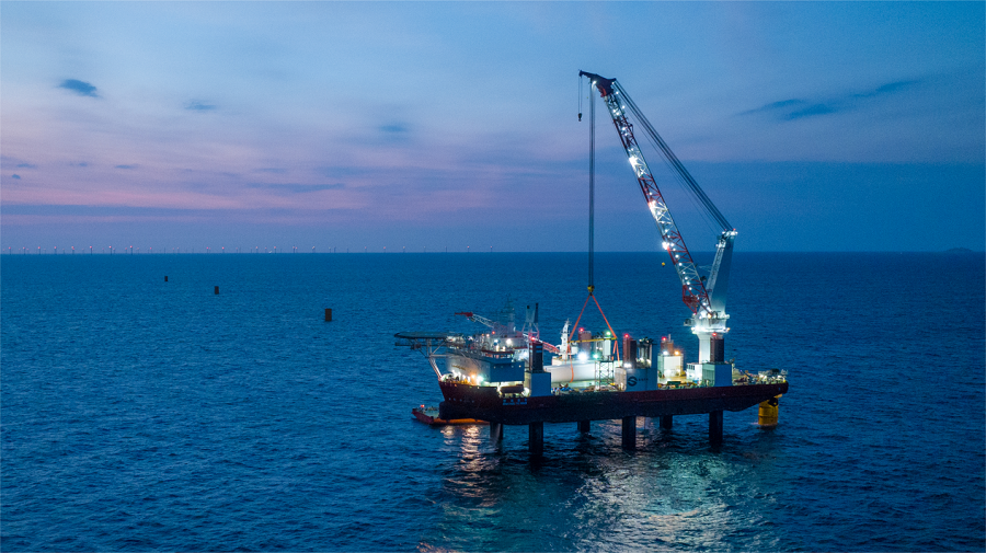10月7日,山東海洋能源旗下“慧海壹號”輪順利完成煙臺海域風(fēng)場十臺海上風(fēng)電機組的安裝作業(yè)。
