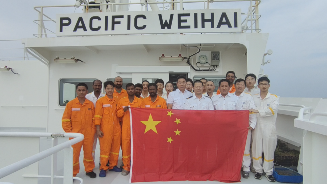 太平洋氣體船開展運(yùn)營船舶船員與國旗同框、為新中國慶生活動,遠(yuǎn)在海外的船員們與國旗合照,進(jìn)一步深化愛國主義教育,營造濃厚的愛國氛圍,充分激發(fā)員工奮發(fā)有為、擔(dān)當(dāng)實(shí)干的激情,為實(shí)現(xiàn)中華民族偉大復(fù)興貢獻(xiàn)力量。